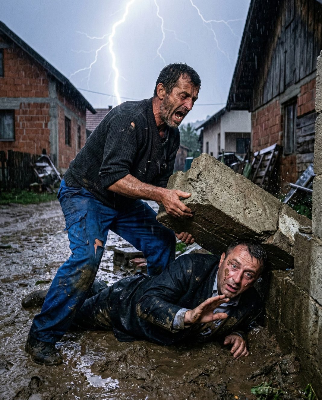 Bez oklijevanja, zgrčio je svoje žuljevite ruke oko teških blokova i počeo ih pomjerati. Kiša mu je slivala niz lice, a prsti su mu krvarili dok je ciglu po ciglu uklanjao s komšijinih grudi. Mišići su mu drhtali, ali nije odustajao. Na kraju je uspio osloboditi Radovana i izvući ga iz ruševina.