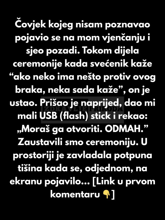 Ali ono što je uslijedilo bilo je potpuno drugačije.Čovjek je prišao polako, bez žurbe, i pružio mladoj mali USB. Nije rekao mnogo, ali njegove riječi su bile dovoljno snažne da svi shvate kako se radi o nečemu važnom. Ceremonija je na trenutak zaustavljena, a prisutni su sa zbunjenošću i iščekivanjem gledali šta će se dogoditi.