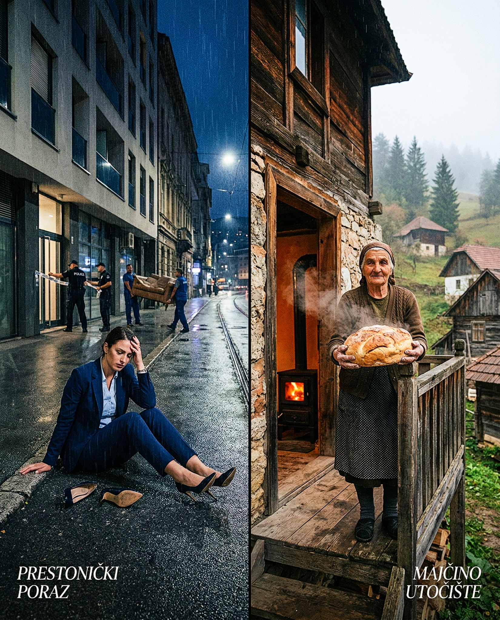 • Bez izbora, Amira je odlučila da se vrati u rodno selo. Bilo je to mesto koje je godinama prezirala, ali jedino mesto na kojem je još mogla da potraži utočište. Ušla je u autobus, skrivajući lice ispod starog kaputa, bojeći se da je neko prepozna. Vožnja je bila duga i mračna, ali, unatoč tome, Amira nije imala kuda da ide. Izašla je na seoskoj raskrsnici, drhteći od hladnoće, dok su njene poslednje skupe cipele polomile štiklu. Koračala je ka staroj kući, mesto na kojem je odrasla, suočavajući se sa strahom da je možda njena majka neće prepoznati ili, još gore, da će joj zatvoriti vrata.