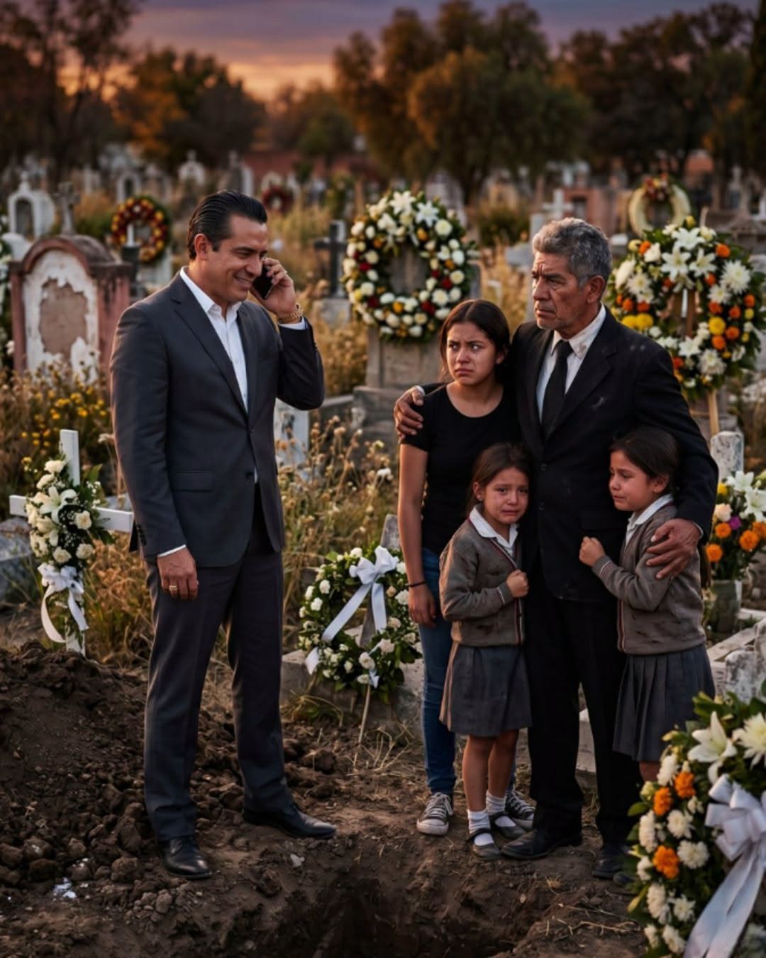 Na dan sahrane Elise, atmosfera je bila teška i gotovo nestvarna. Ljudi su stajali u tišini, dok je njen otac Ramiro jedva uspijevao da ostane na nogama. Uz njega su bile tri djevojčice — Paloma, Estrella i Gabriela — koje su u tom trenutku izgubile sve što su do tada smatrale sigurnošću. Njihova mala ruka u Ramirovoj šaci bila je jedini znak da porodica još uvijek postoji, iako slomljena.