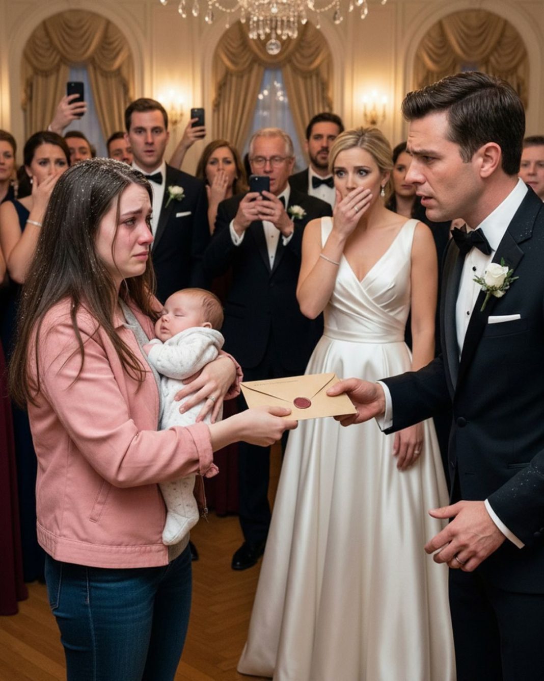U međuvremenu, Mason je organizovao luksuzno venčanje, priređeno sa svime što bi moglo da stvori savršen ambijent. Kristalni lusteri, gudački kvartet, goste obučeni u najlepša odela – sve je bilo besprekorno. Njegova nova supruga, Sloane, izgledala je kao princeza u satenskoj haljini, nesvesna svih onih dokaza koji su polako dolazili u njegovu blizinu. A žena sa bebom u istrošenom crnom kaputu stajala je pri dnu sale, svojim izgledom stvarajući oštar kontrast prema glamu i bogatstvu oko nje. Ispod nje se nalazila istina koja je uskoro morala da se otkrije.
