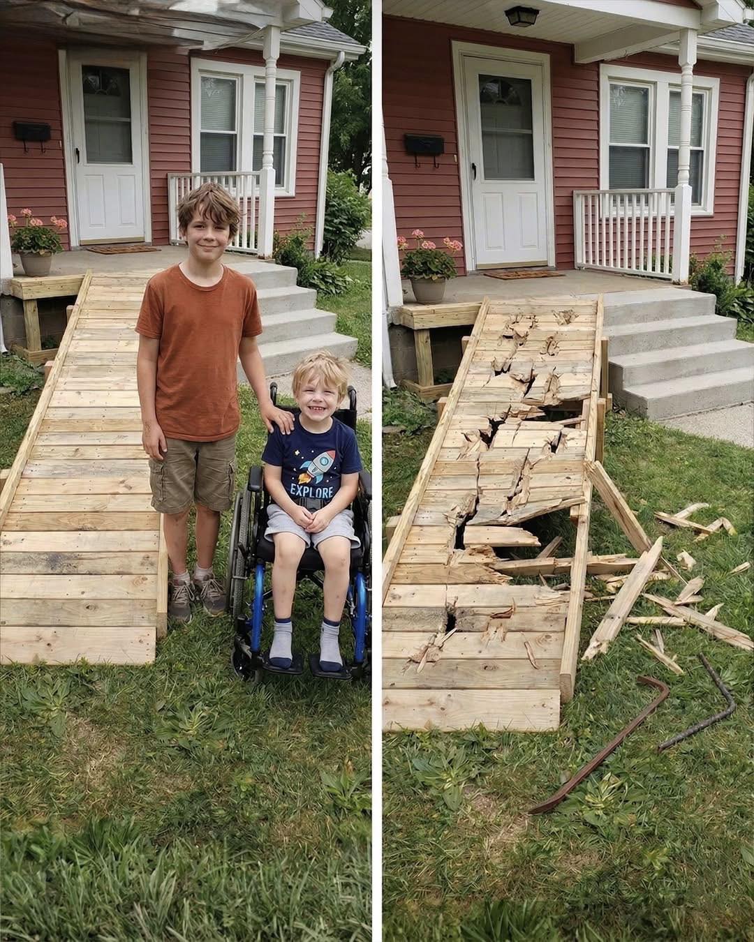Za Ethana, ovo nije bila samo situacija koju bi mogao ignorirati. On je znao da mora nešto poduzeti. S obzirom da nije imao sredstva ili velike mogućnosti, odlučio je učiniti ono što je mogao – pomoću volje i odlučnosti. Tri dana je radio bez prestanka, trošeći sav novac koji je imao ušteđen, sve u želji da pomogne svom prijatelju. Nakon tih tri dana, zajedno sa svojom porodicom, postavio je rampu ispred Calebove kuće. Taj trenutak bio je emotivan i vrijedan svega – prvi put, Caleb je mogao izaći iz svog dvorišta, smiješiti se i igrati s drugom djecom, kao svako drugo dijete.