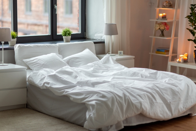 - Boje navlaka takođe igraju značajnu ulogu u stvaranju smirujuće atmosfere. Pastelne nijanse, poput bež, sive, peska ili mlečno bele, mogu učiniti da vaš krevet izgleda elegantno i umirujuće, što pomaže da lakše utonete u san. Uz to, možete dodati i pleteni prekrivač ili jastuke različitih veličina, čime ćete kreirati atmosferu idealnu za opuštanje, s idealnim scenarijem: Netflix, vino i ćebe.