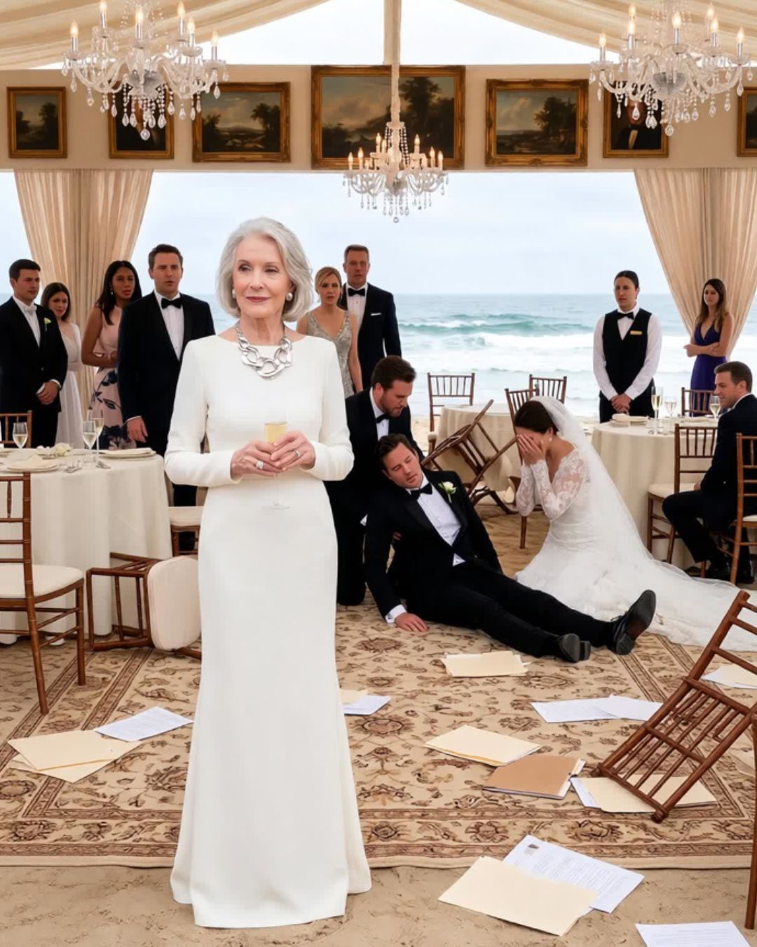 Prvi znakovi izdaje pojavili su se veoma brzo. Lydia, koja je nekada bila njen očajnički ljubavni predmet, sada je pokazivala hladnoću. Nije bilo ni traga ljubavi i zahvalnosti, već je pokazala indiferentnost, pa čak i prezir prema svojoj majci. Kad je Eleanor pokušala da je pozdravi, Lydia ju je ignorisala, nešto što nije mogla da razjasni. A onda je Marcus, sa svojim bezdušnim osmehom, predstavio dokument – Futures Funding Agreement. U njemu je jasno stajalo da Eleanor mora da donira 50 hiljada dolara za tajni fond, dok bi imanje na obali bilo predato njima pre nego što ceremonija počne.