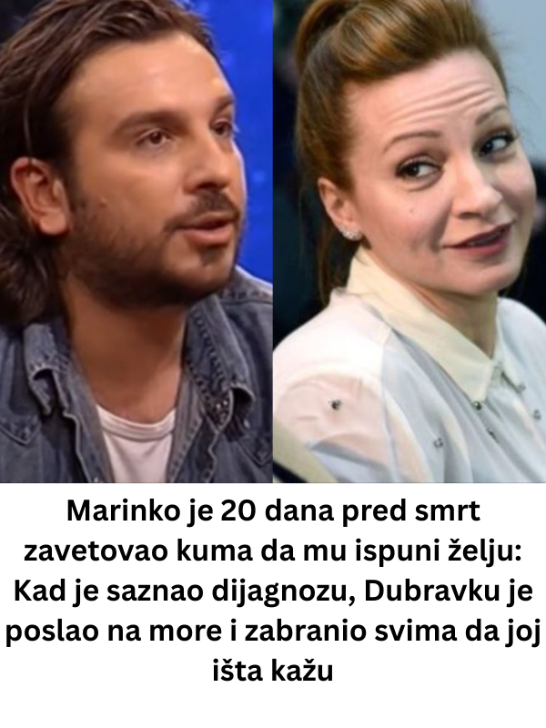- Kada je Marinko saznao za svoju dijagnozu, imao je samo 37 godina. Lekari su mu saopštili da mu je preostalo samo nekoliko meseci života. Ipak, i pored teške borbe, Marinko je odbio da se preda. Uprkos svemu, odlučio je da ne gubi nadu, a poslednja želja koju je izrazio bila je duboko emotivna i duhovna. Naime, dvadesetak dana pre svoje smrti, Marinko je želeo da bude kršten, a za kuma je odabrao svog prijatelja Dušana Kovačevića, poznatog glumca, koji je, kako bi ispunio ovu želju, prvo morao da se krsti.