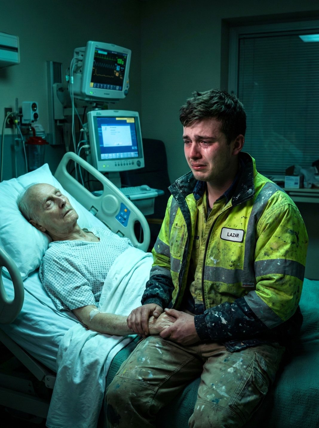 Pored njega je bio Lazar, mlađi sin, čovjek grubih ruku i umornog pogleda. Došao je direktno s gradilišta, u radnom odijelu umazanom malterom, jer nije želio da gubi ni minut dok mu se otac bori s posljednjim satima života. Već danima je bio uz njega, bez sna i odmora, mijenjao pelene, hranio ga kašičicom i brisao znoj s njegovog čela. Ipak, uprkos svemu, Petar ga gotovo nije primjećivao. Kada bi nakratko došao sebi, tiho bi dozivao: “Darko… Gdje je moj Darko? Zar nije rekao da će doći?”