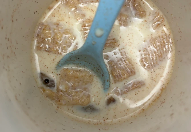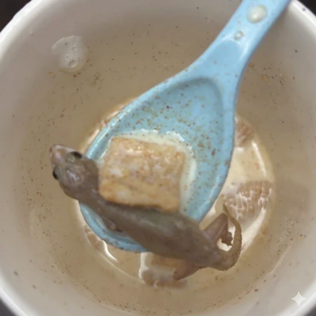 - Međutim, njen užitak je bio kratkog trajanja. Dok je uživala u obroku, naišla je na nešto što ju je zgrozilo i gotovo nateralo da povrati hranu. Naime, dok je zahvatila poslednju kašiku muslija, u njima je pronašla mali gušter, koji je bio još uvek u fazi razvoja, nespretno prisutan u pakovanju muslija.