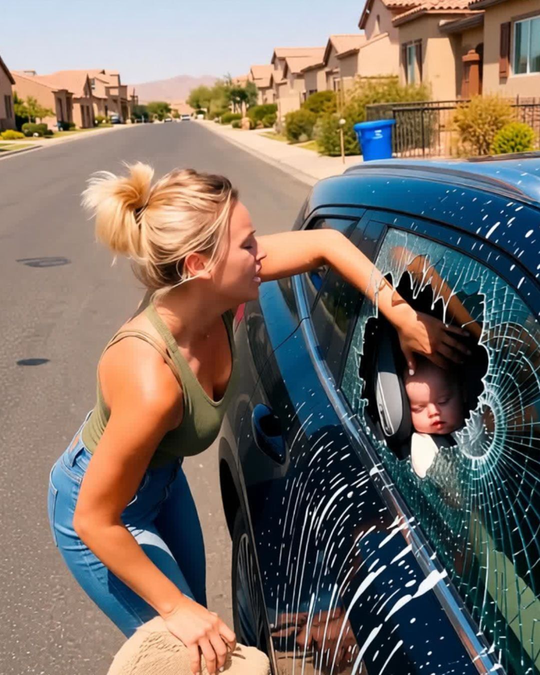 Kad je prišla vozilu, Patty je ugledala bebu, iscrpljenu i bez snage, gotovo potpuno nesvesnu. Činilo se da je beba umirala od toplotnog udara, a Patty je znala da ne može samo proći i ignorisati to. Iako je riskirala mnogo — uključujući hapšenje, tužbu i finansijski slom — Patty nije stajala. Uzela je kamen i razbila prozor, izvukla bebu iz vrućeg vozila i odmah je nosila u najbližu bolnicu, bez obzira na sve prepreke i opasnosti koje su joj se nalazile na putu.