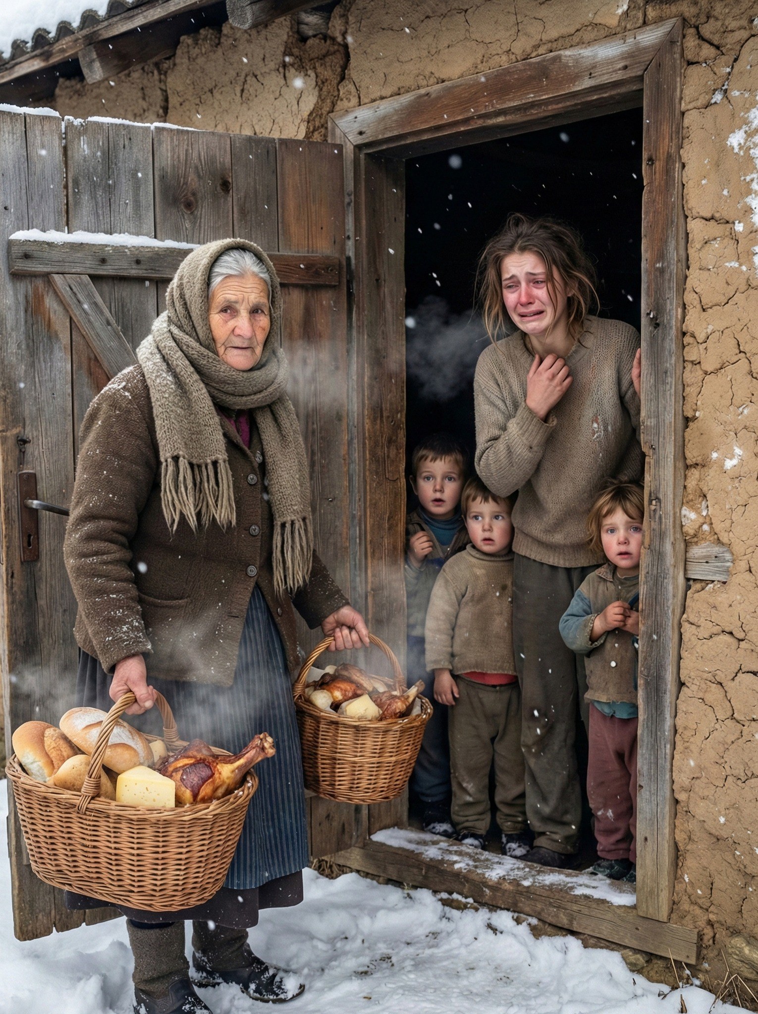 Pogledala je u tu praznu kuću, ispunjenu tišinom, dok su svi snovi o savršenom Božiću izbledeli. Ali u tom trenutku, pogled joj je pao na kraj ulice, prema skromnoj kući u kojoj je živela Nataša – mlada žena koju je muž napustio, sa troje male dece. Stana je znala da Nataša teško živi, da čisti tuđe kuće i da često nisu imali ni za hleb. Zamišljala je kako je Božić u toj kući verovatno prošao u tišini, bez pečenja i kolača. Uzela je dve velike pletene korpe, napunila ih sa svim što je spremila i krenula prema Natašinoj kući.