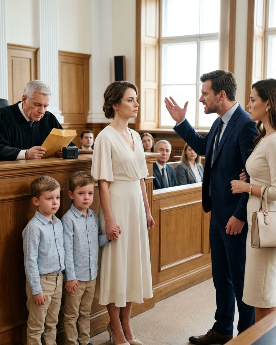 Na samom početku, sve je izgledalo kao obična scena razvoda. Žena, koja je navikla na svoju borbu, ušla je u sudnicu sa svojim sinovima, blizancima, držeći ih za ruke. Svi su očekivali da će izaći slomljena, bez nade i sa gubitkom, dok je njen muž već bio uvjeren u svoju pobjedu.