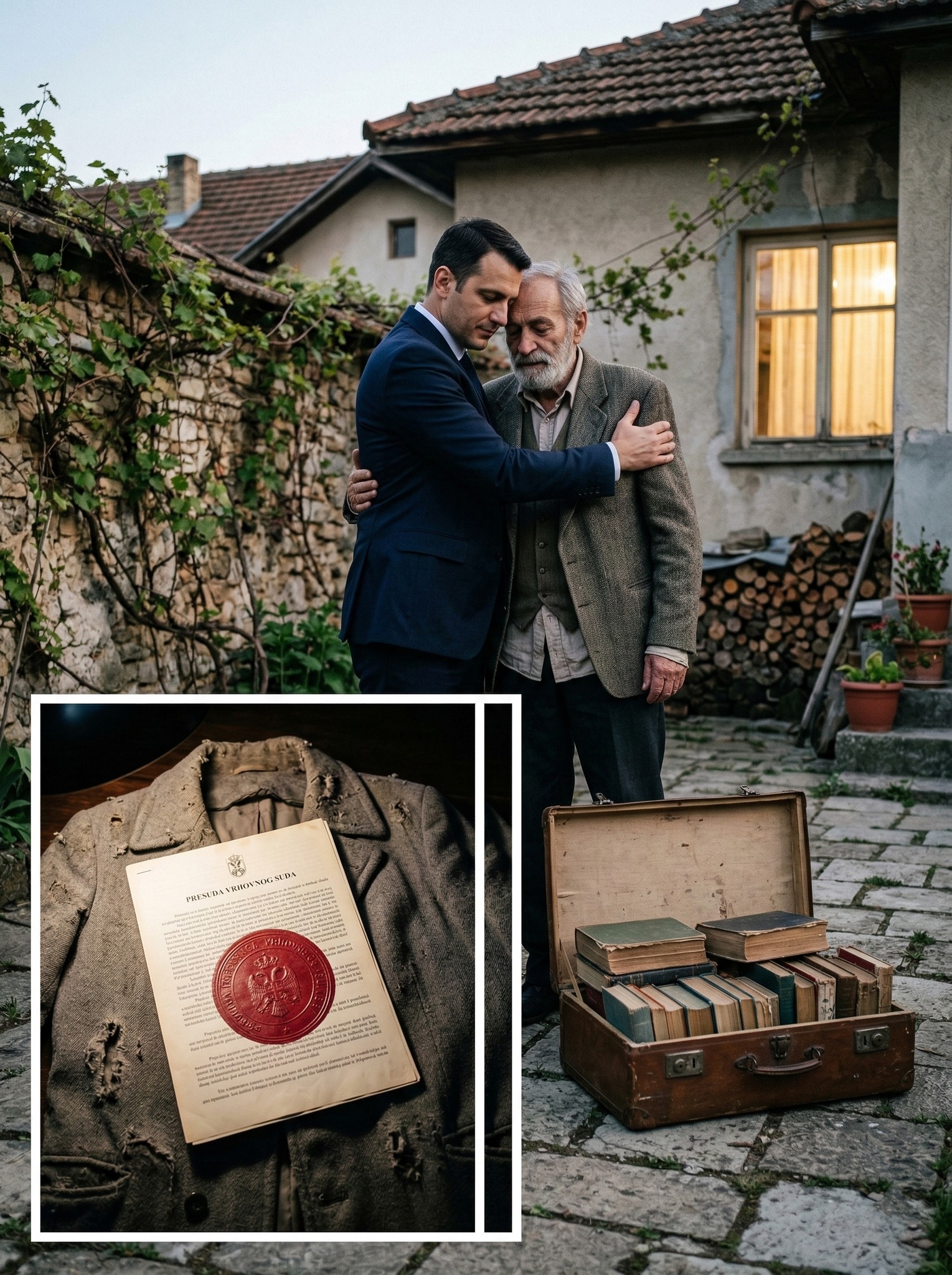 - Advokat je prišao profesoru i s poštovanjem spustio glavu. Zatim se okrenuo prema tajkunu i jasno pročitao odluku: svi ugovori kojima je kuća oduzeta bili su falsifikovani, a imovina je vraćena pravom vlasniku.Policija je odmah reagovala. Tajkun je uhapšen zbog prevare i zloupotrebe položaja, dok su komšije nijemo posmatrale kako se situacija potpuno preokreće.Ali ono što je uslijedilo dirnulo je sve prisutne.Advokat je otvorio gepek svog automobila i pažljivo izvadio stari, iznošeni kaput. Bio je uredno spakovan i očuvan uprkos godinama.