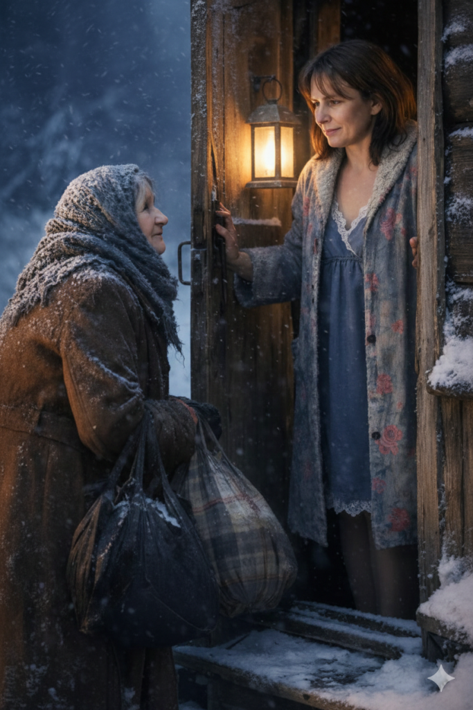 Iako je bila sama s četvoro dece i imala mnogo razloga za strah, žena je u tom trenutku shvatila da mora da učini ono što je ispravno. Otvorila je vrata i ponudila starici sve što je mogla – komadić hleba. Iako je to bilo malo, bila je to jedina stvar koju je mogla ponuditi. Starica je zahvalila, pojela komadić hleba, i legla da spava, držeći svoju torbu čvrsto uz sebe.