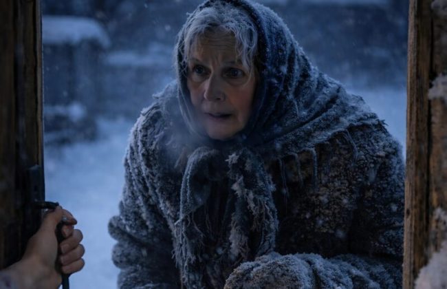 - Te noći, dok je razmišljala o tome što joj predstoji, začula je tihi zvuk kucanja na vratima. Bilo je to nešto što nije mogla da predvidi, ali je odlučila otvoriti vrata. Na pragu je stajala starija žena sa štakom i ogromnom torbom, koja je tražila pomoć. Rekla je samo: „Daj mi da prespavam, zamrzavam se.”