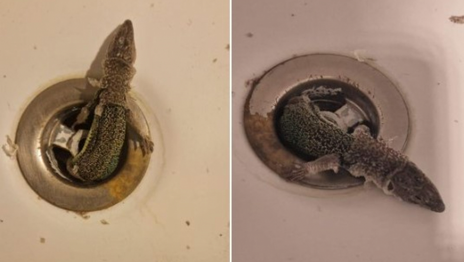 - Dok je čistila kupatilo, primetila je nešto neobično u lavabou. Nakon što je bolje pogledala, shvatila je da se radi o gušteru koji je očigledno pokušavao da izađe iz odvoda. Gušter se, međutim, zaglavio, te je na kraju uginuo u pokušaju da pronađe izlaz.