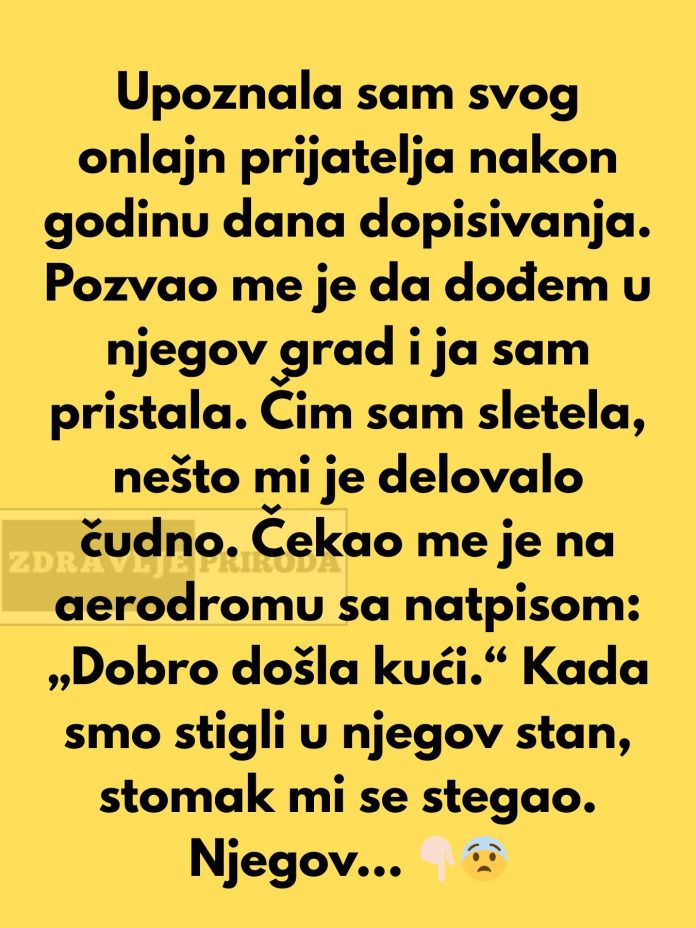 - Jedna takva priča dolazi od žene koja je upoznala svog online prijatelja nakon godinu dana dopisivanja, no njen susret s njim bio je daleko od očekivanog.Na početku, sve je izgledalo kao nevina i uzbudljiva prilika za upoznavanje, jer su se dopisivali cijelu godinu dana. Iako je osjećala uzbuđenje i znatiželju, žena je pristala na susret u njegovom gradu.
