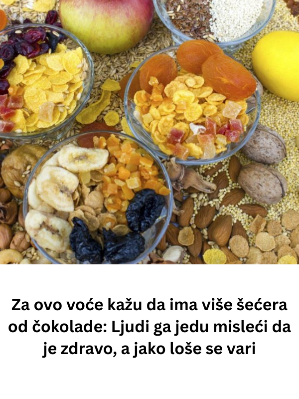 Suvo voće ima reputaciju zdrave užine, praktične za nošenje i idealne za brzu energiju tokom dana. Ljudi ga jedu između obroka, dodaju u kaše, jogurte ili ga grickaju umesto čokolade. Međutim, ono što se retko uzima u obzir jeste činjenica da sušeno voće u sebi može sadržati izuzetno visoku koncentraciju šećera, neretko čak i veću od one koju ima klasična čokolada. Upravo zbog toga, organizam ga ne doživljava uvek kao blagotvornu namirnicu, već kao pravi šećerni udar.